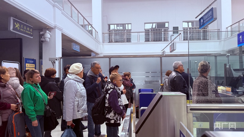 10月11日,在饶河口岸入境大厅,记者看到,刚刚搭乘当天第一班船的俄罗斯游客排着长队等待入境。