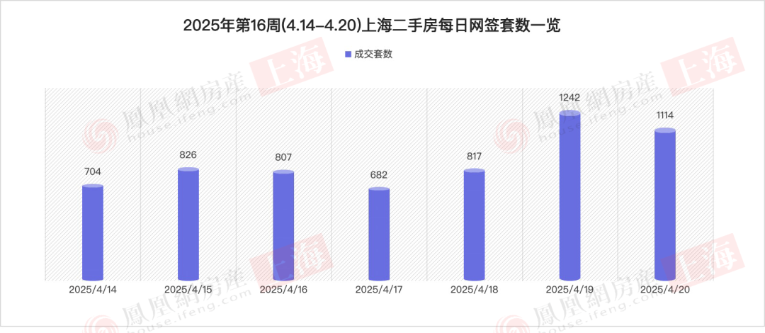 根据上海网上房地产最新监测数据,2025年第16周(4月14日-4月20日),全市二手房网签总量达6192套,虽较前一周小幅回落1.39%,但仍维持在较高水平。从日均成交来看,市场保持着885套的稳健节奏,显示出较强的韧性。
